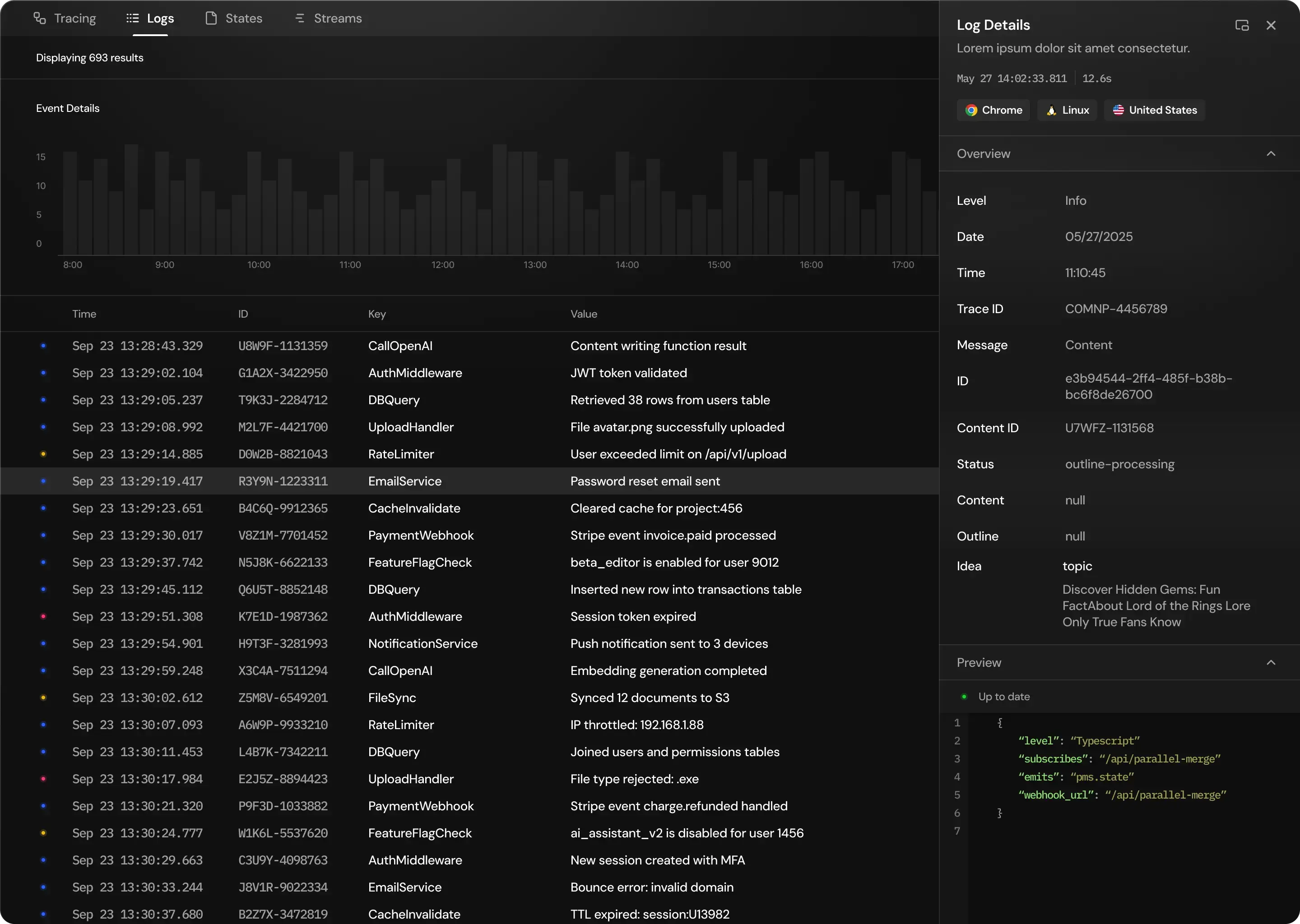 config = {"name": "ProcessMessage",type: 'event',"subscribes": ["message.sent"],"emits": ["message.processed"], "flows": ["messaging"] } async def handler(input_data, context): text = input_data.get("text") user_id = input_data.get("userId") status = input_data.get("status") processed_message = {"text": text, "userId": user_id, "status": "processed"} await context.state.set("processed", user_id, processed_message) await context.streams.processed.set(user_id, processed_message) context.logger.info("Message processed", {"userId": user_id}) await context.emit({ "topic": "message.processed", "data": processed_message })